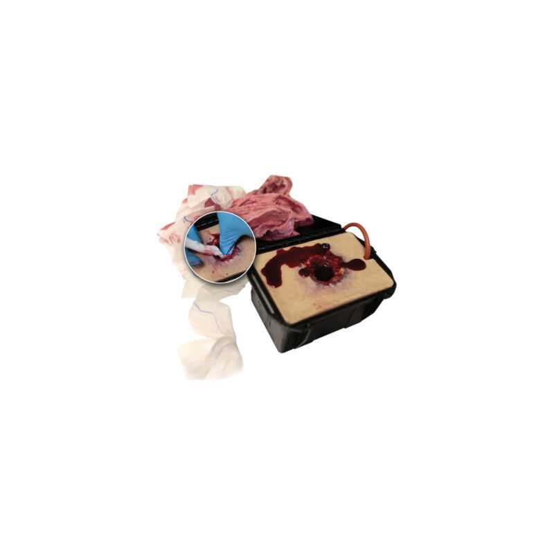 Trenażer tamowania krwotoku – rana postrzałowa Techline Gunshot in a Box® to zaawansowane narzędzie szkoleniowe zaprojektowane do nauki kontroli masywnych krwotoków. Urządzenie symuluje realistyczną ranę postrzałową z aktywnym wypływem krwi, co pozwala na praktyczne ćwiczenie procedur ratowniczych. Kluczowym elementem jest odwzorowanie realnych warunków pola działań, dzięki czemu użytkownik może trenować pod presją czasu i w sytuacjach zbliżonych do rzeczywistych zdarzeń.