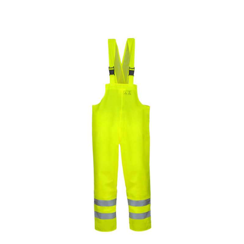 To specjalistyczny zestaw odzieży ochronnej przeznaczony do pracy w warunkach wymagających zwiększonej widoczności użytkownika. Składa się z kurtki o długości 3/4 oraz spodni typu ogrodniczki. Wykonany jest z materiałów zapewniających odporność na wodę oraz zabrudzenia, a także wyposażony w elementy odblaskowe poprawiające bezpieczeństwo. Kluczowym elementem jest wysoka widzialność użytkownika w każdych warunkach atmosferycznych.