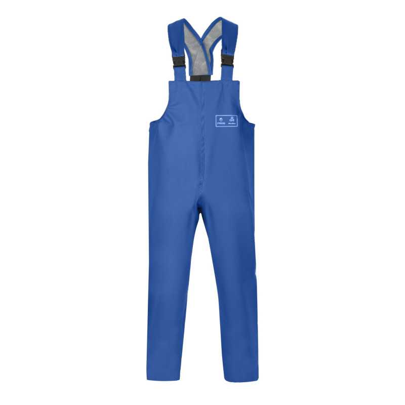 To podstawowy model odzieży ochronnej przeznaczonej do pracy w środowisku wilgotnym. Spodnie wykonane są z materiału powlekanego, który zapewnia nieprzemakalność oraz ochronę przed zabrudzeniami. Konstrukcja typu ogrodniczki umożliwia stabilne utrzymanie odzieży na ciele oraz zabezpiecza dodatkowo górną część nóg i tułów. Kluczową cechą jest skuteczna ochrona przed wodą przy zachowaniu prostoty i funkcjonalności.