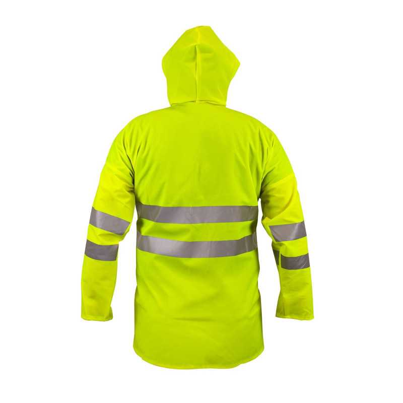 Kurtka robocza zapewnia wysoką widzialność oraz skuteczną ochronę przed deszczem i wiatrem. Wydłużony krój 3/4 zwiększa zabezpieczenie ciała, a wodoodporny materiał gwarantuje komfort pracy w trudnych warunkach atmosferycznych.