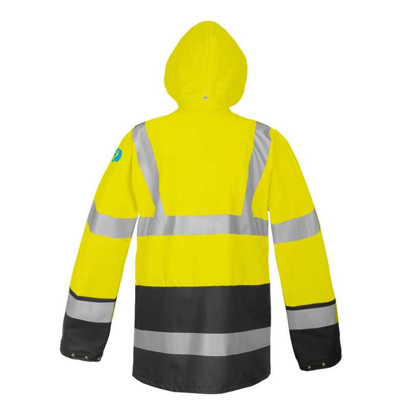 Kurtka ostrzegawcza dwukolorowa przeznaczona do pracy w trudnych warunkach pogodowych, zapewniająca wysoką widoczność oraz skuteczną ochronę przed deszczem i wiatrem. Funkcjonalna konstrukcja zwiększa bezpieczeństwo i komfort użytkownika w terenie.