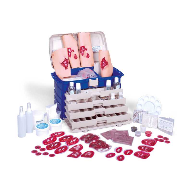 Rozbudowany komplet do realistycznego odwzorowania obrażeń wykorzystywany podczas szkoleń ratowniczych. Szeroki wybór ran i efektów pozoracyjnych pozwala przygotować scenariusze ćwiczeń zbliżone do rzeczywistych zdarzeń. - różne typy ran - materiały do charakteryzacji - akcesoria uzupełniające