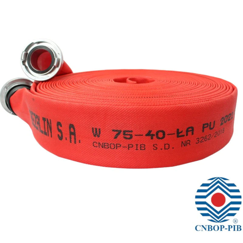 Pożarnicze węże tłoczne z powłoką zewnętrzną dedykowane do drabin strażackich.