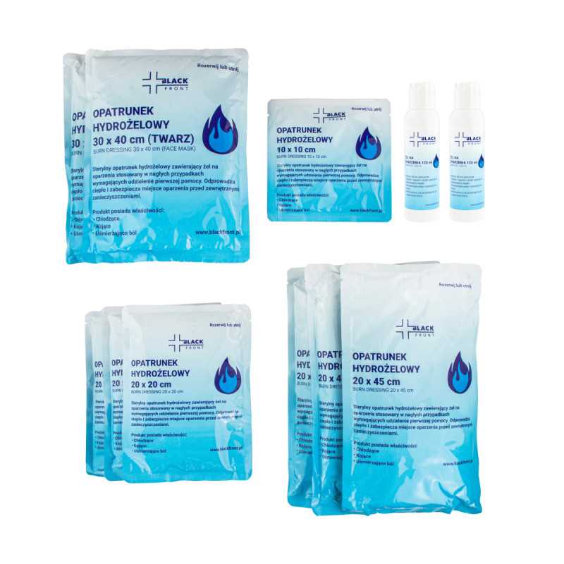 Zestaw znajduje zastosowanie w ratownictwie medycznym, straży pożarnej, szpitalach, jednostkach wojskowych oraz zakładach pracy. Jest niezastąpiony w sytuacjach nagłych, takich jak oparzenia termiczne, chemiczne, słoneczne oraz elektryczne. Może być stosowany zarówno u dorosłych, jak i u dzieci. Opatrunki hydrożelowe pomagają zapobiegać infekcjom, zabezpieczając ranę przed czynnikami zewnętrznymi.