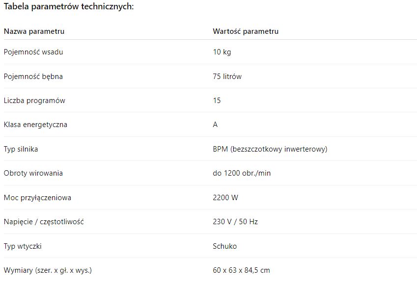 Przemysłowa pralka o pojemności 10 kg, wyposażona w 15 programów prania, silnik inwerterowy BPM i system zabezpieczeń Aquasafe. Zaprojektowana do intensywnego użytku w służbach mundurowych i sektorze BHP. Zgodna z dyrektywą 2006/42/UE.