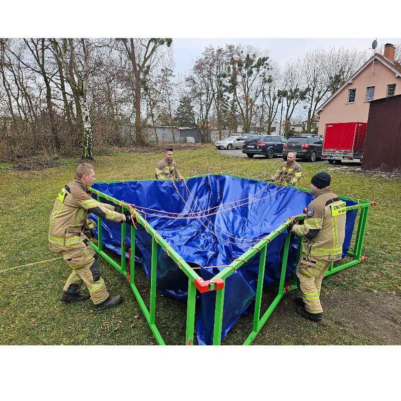 Składany zbiornik na wodę o pojemności 13 000 litrów, przeznaczony do działań gaśniczych i logistycznych. Konstrukcja umożliwia szybkie rozstawienie i łatwy transport po złożeniu.