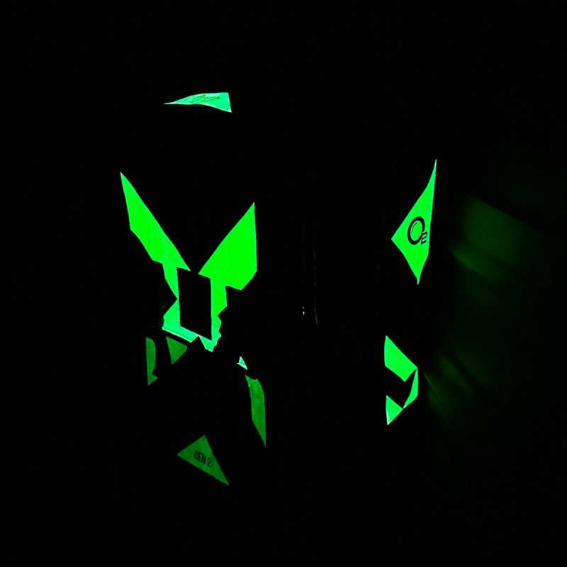 - wszystkie jaskrawe wzory widniejące na zewnętrznym materiale wykonano farbą luminescencyjną. Dzięki temu plecak będzie pochłaniał zarówno naturalne jak i sztuczne światło, a potem świecił w ciemności! Jest to pierwszy plecak ratowniczy, który dysponuje takim rozwiązaniem. Efekt wizualny poniżej, jest to zwykłe zdjęcie z telefonu, bez naświetlania