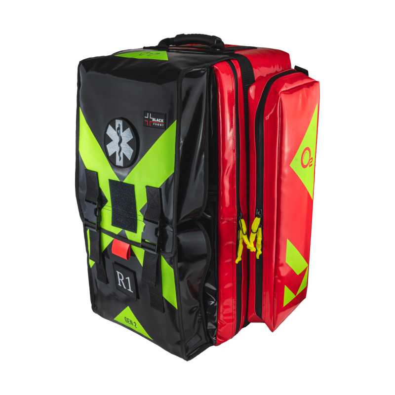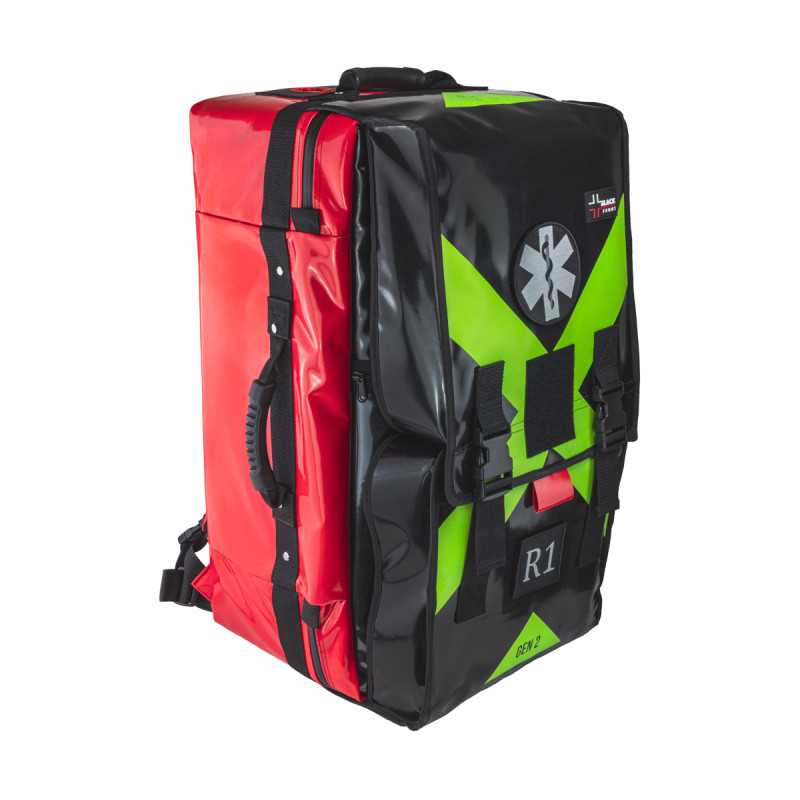 Zestaw PSP R1 w plecaku BLACK FRONT przeznaczony dla przeszkolonych strażaków-ratowników oraz dla innych jednostek ratowniczych wchodzących w skład Krajowego Systemu Ratowniczo-Gaśniczego (KSRG). Zestaw został skompletowany zgodnie z wytycznymi Komendanta Głównego Państwowej Straży Pożarnej z czerwca 2021 roku “Zasady Organizacji Ratownictwa Medycznego w Krajowym Systemie Ratowniczo-Gaśniczym”. Jego zadaniem jest umożliwienie ratownikom udzielania pierwszej pomocy kwalifikowanej osobom poszkodowanym na miejscu zdarzenia, zgodnie z obowiązującymi procedurami, w tym m. in.: