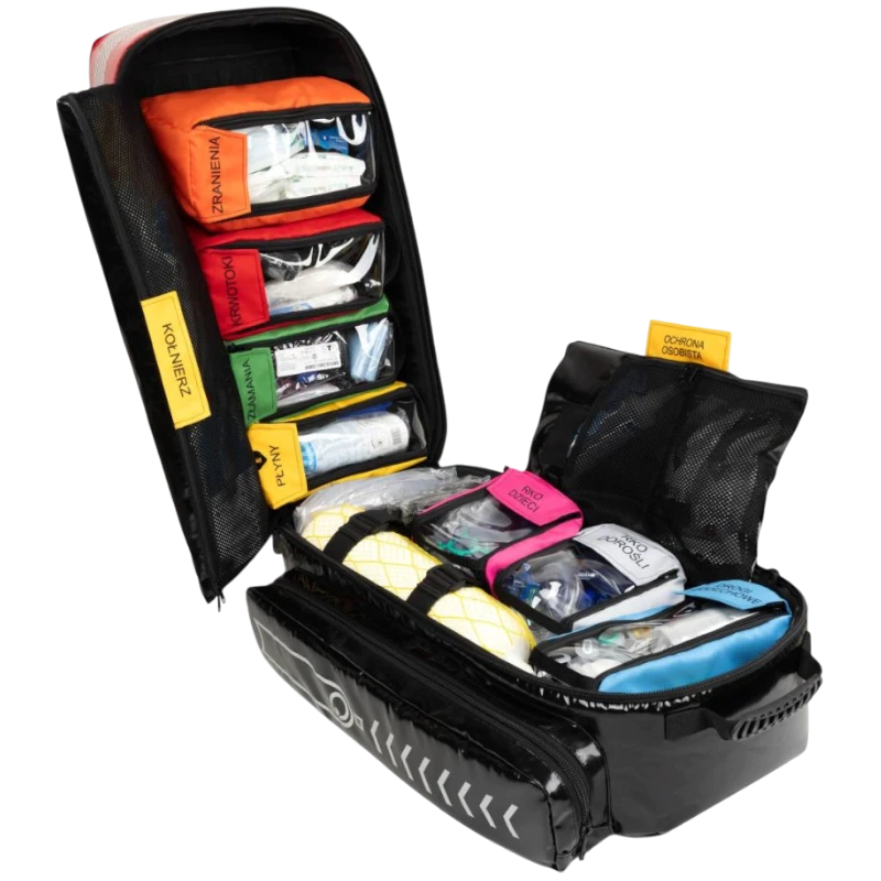 ✅ Szybki dostęp do wyposażenia – przezroczyste kieszenie i kolorowe saszetki, które ułatwiają identyfikację sprzętu.